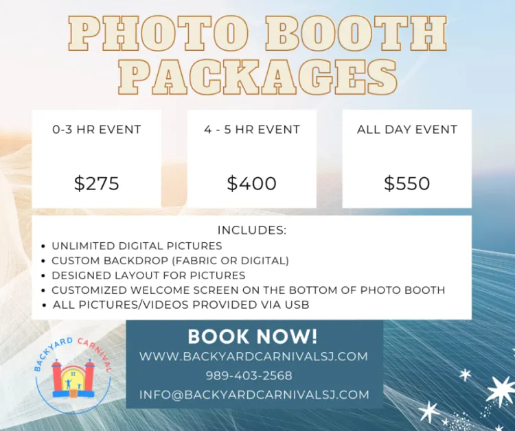 Each rental includes a choice of our stunning backdrops selectable during booking. Plus our software supports custom backgrounds allowing you to create a unique photo experience. Each rental comes with one complimentary custom background or border to align with your event's theme with additional options available for a small fee.